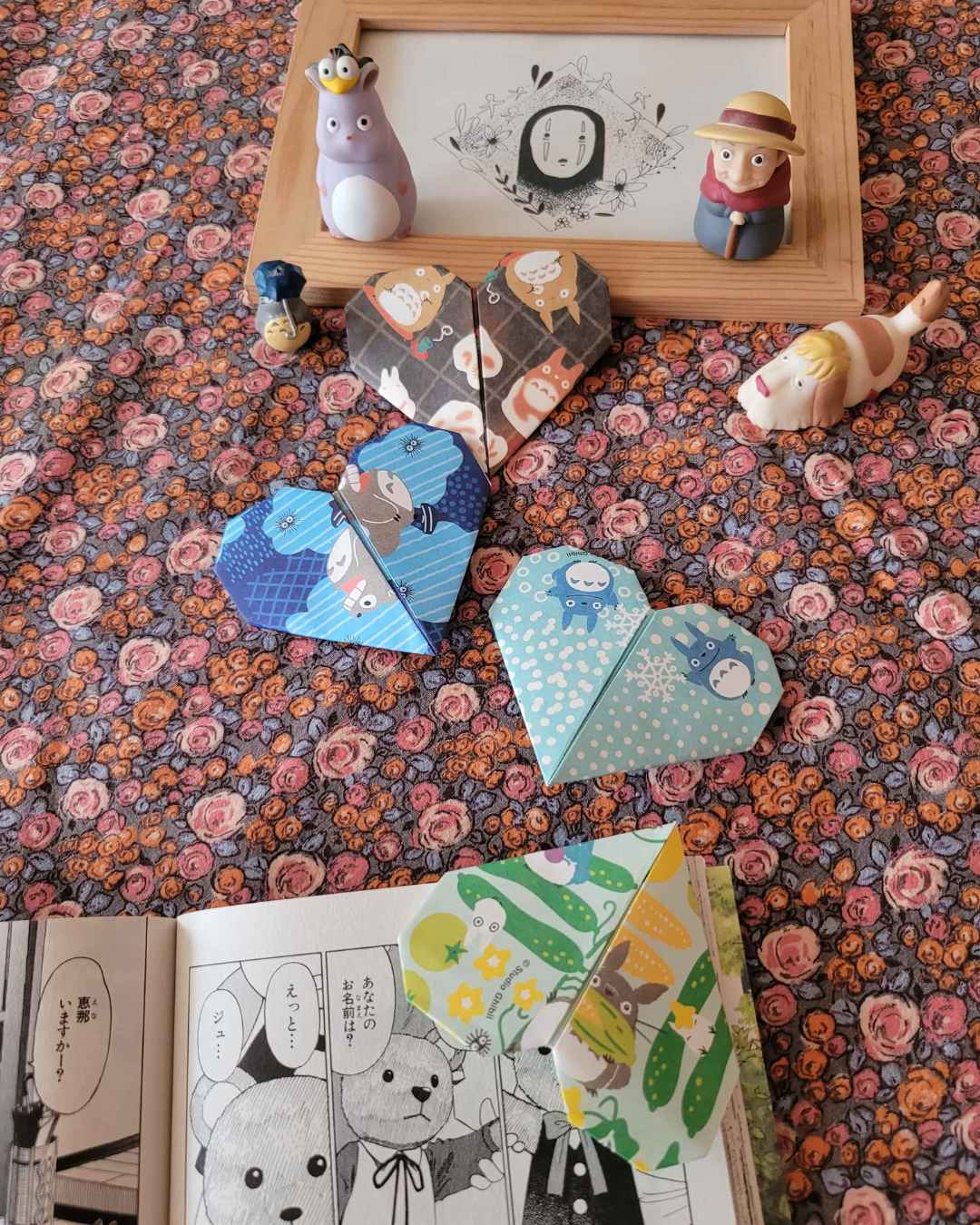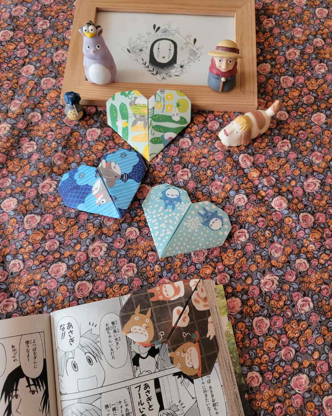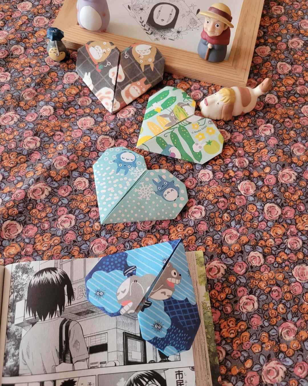 🌸 Ce lot de 4 marque-pages est réalisé en origami avec du papier washi des studio Ghibli.