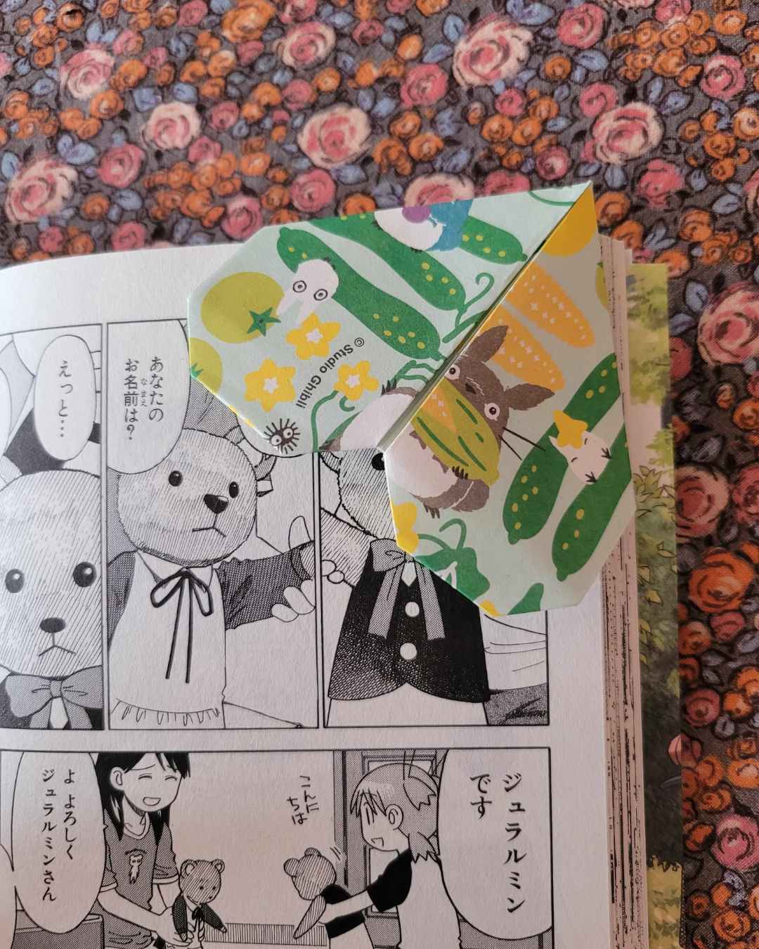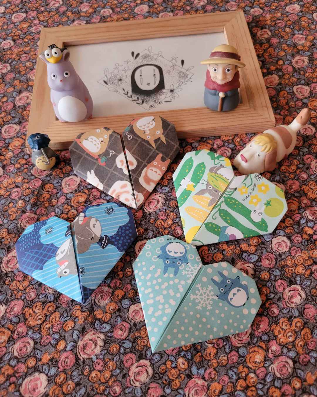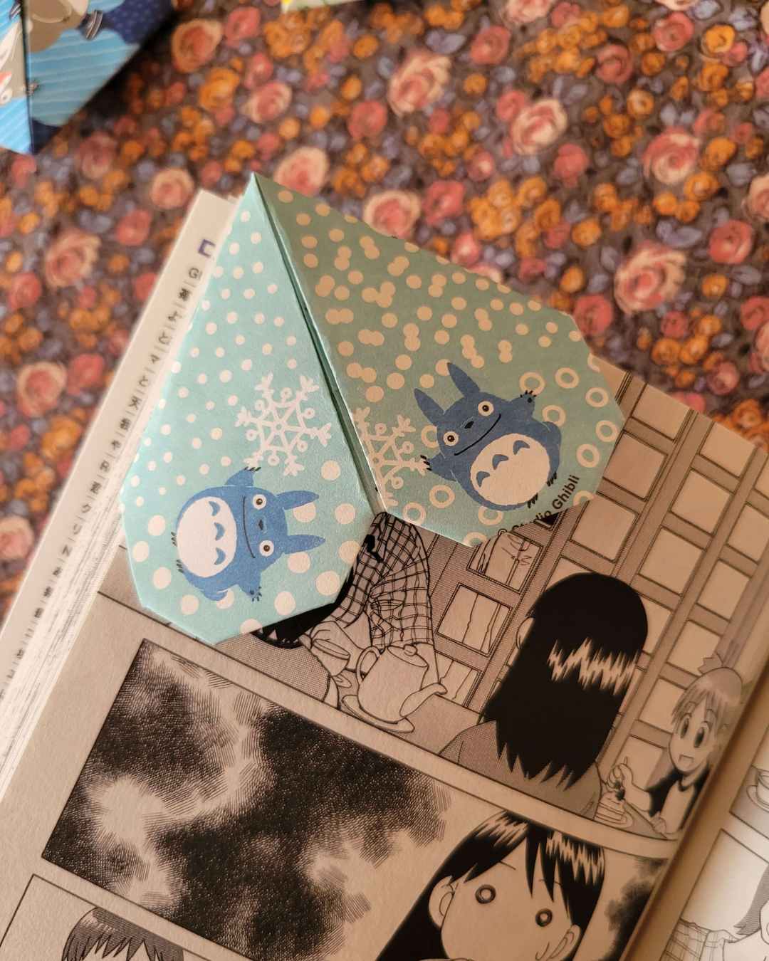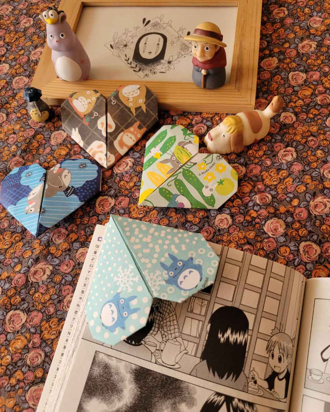🌸 Ce lot de 4 marque-pages est réalisé en origami avec du papier washi des studio Ghibli.