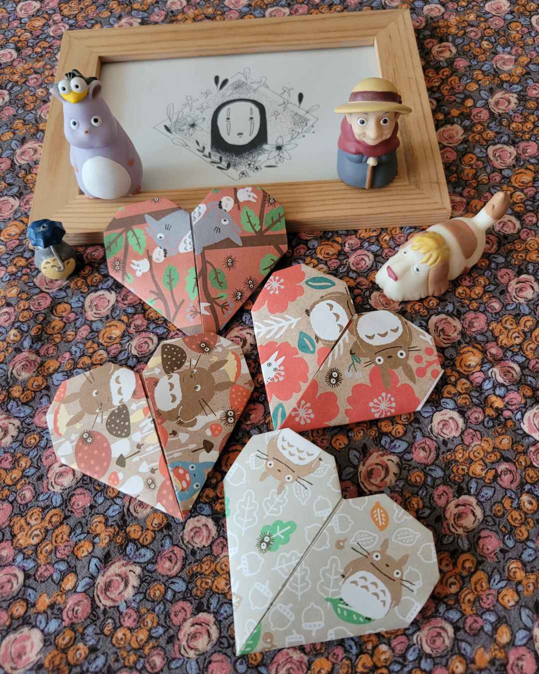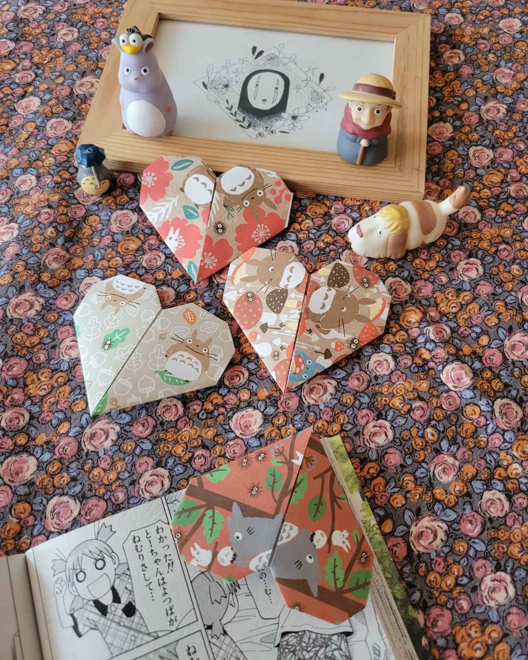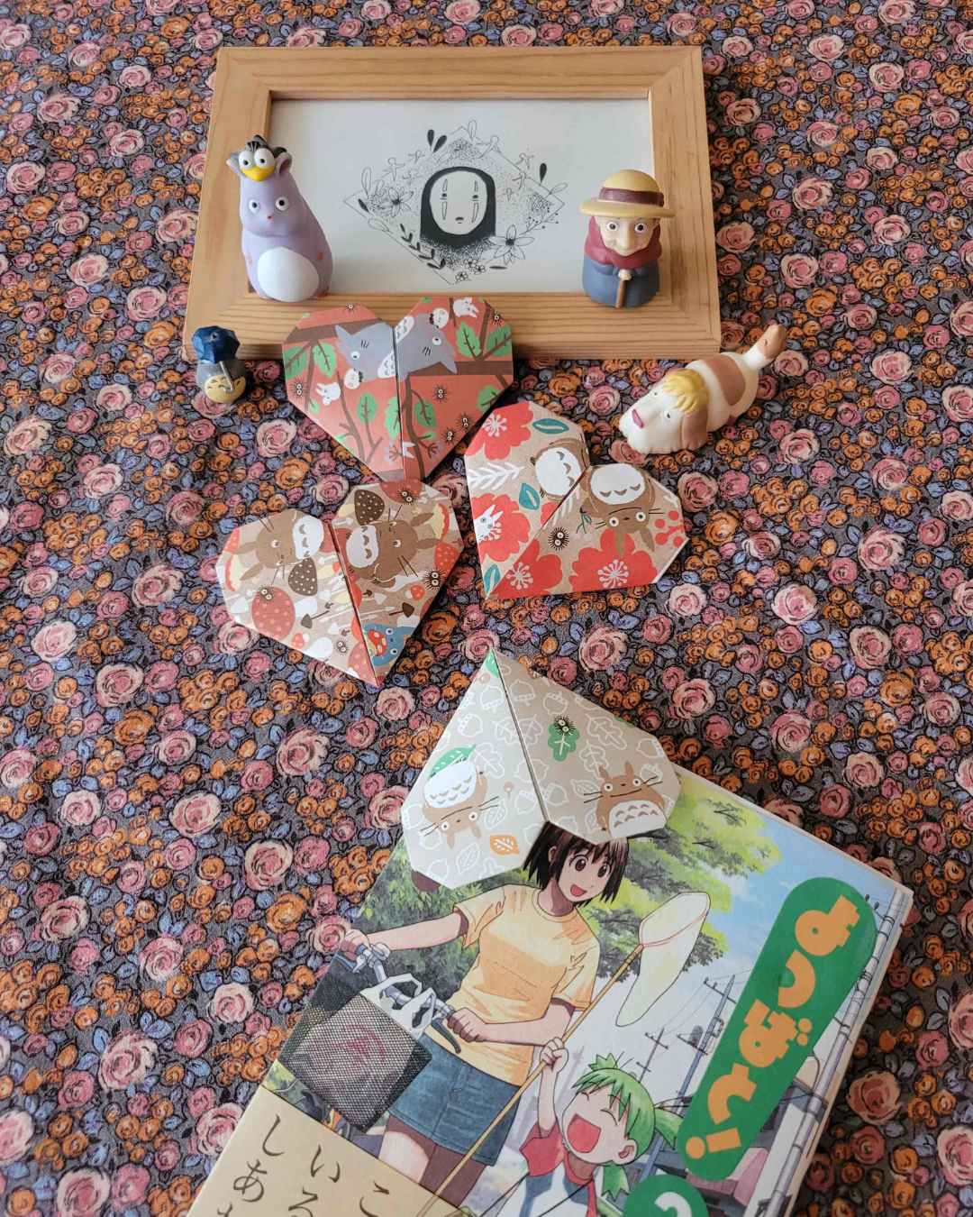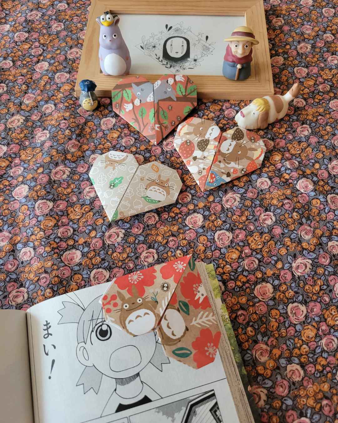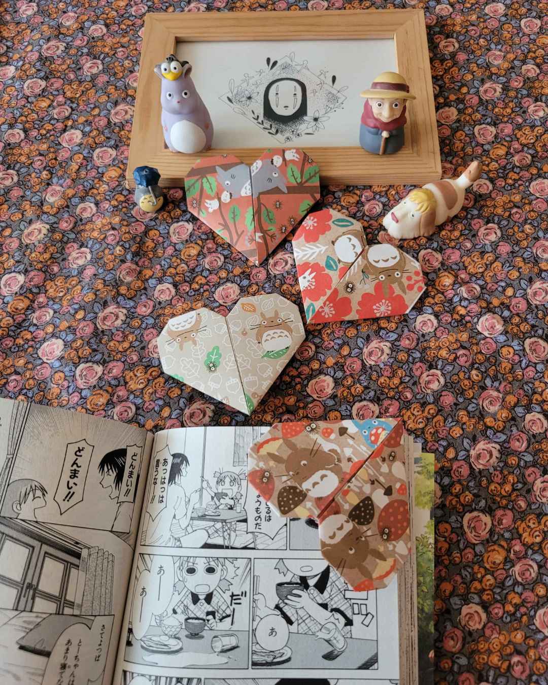🌸 Ce lot de 4 marque-pages est réalisé en origami avec du papier washi des studio Ghibli.